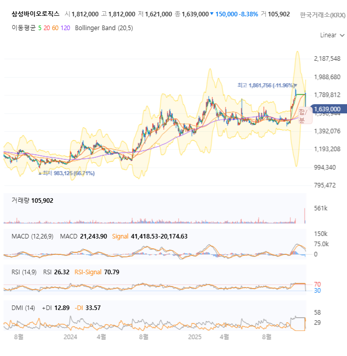 | 현재 주가 | 1,639,000원 | 전일 대비 -8.38% 급락 |